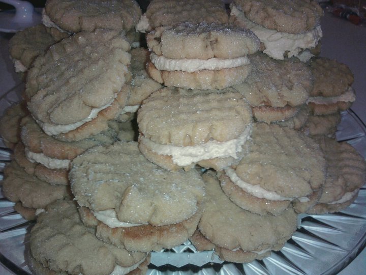 I got one done, so far. I made the peanut butter cookie sandwiches and they are so good but so rich. Too sweet for my taste. I love a peanut butter cookie but the filling in these bad boys is RICH. Whoa. I can eat one, if I have a glass of milk. I think that if I made them again, I'd cut the powdered sugar amount in half. It's just way too much sweetness for me. Now if you like super sweet, you'd probably love them. It's a great recipe, nonetheless.